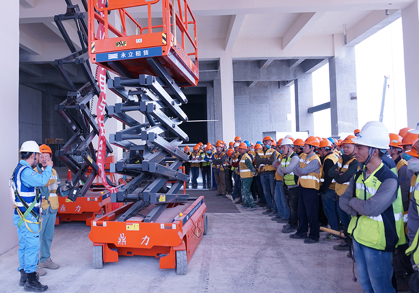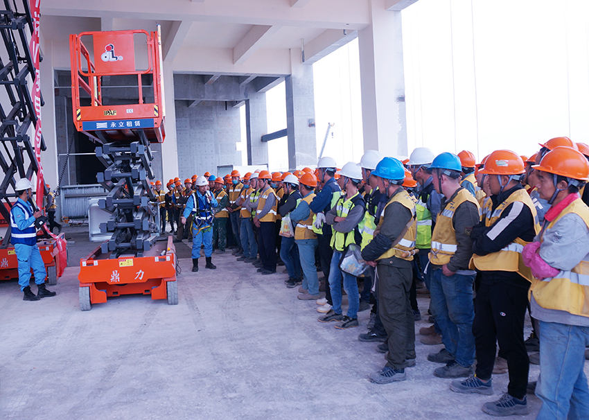10月27日,在实机培训后,永立租赁培训讲师对分包安全主管、现场领班等,进行系统的理论培训,包括操作安全、操作前检查、场地检查、功能测试等内容。