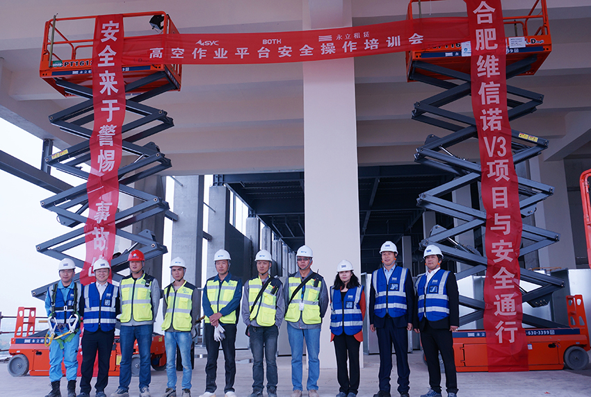 永立租赁根据客户需求,快速提供多种类型的高空作业平台,在维信诺V3项目的设备量已超过200台。在满足客户设备需求的同时,永立租赁更加重视与客户沟通及后续的服务支持,通过现场培训、理论培训、服务派驻等多种方式,为客户提供更多助力。