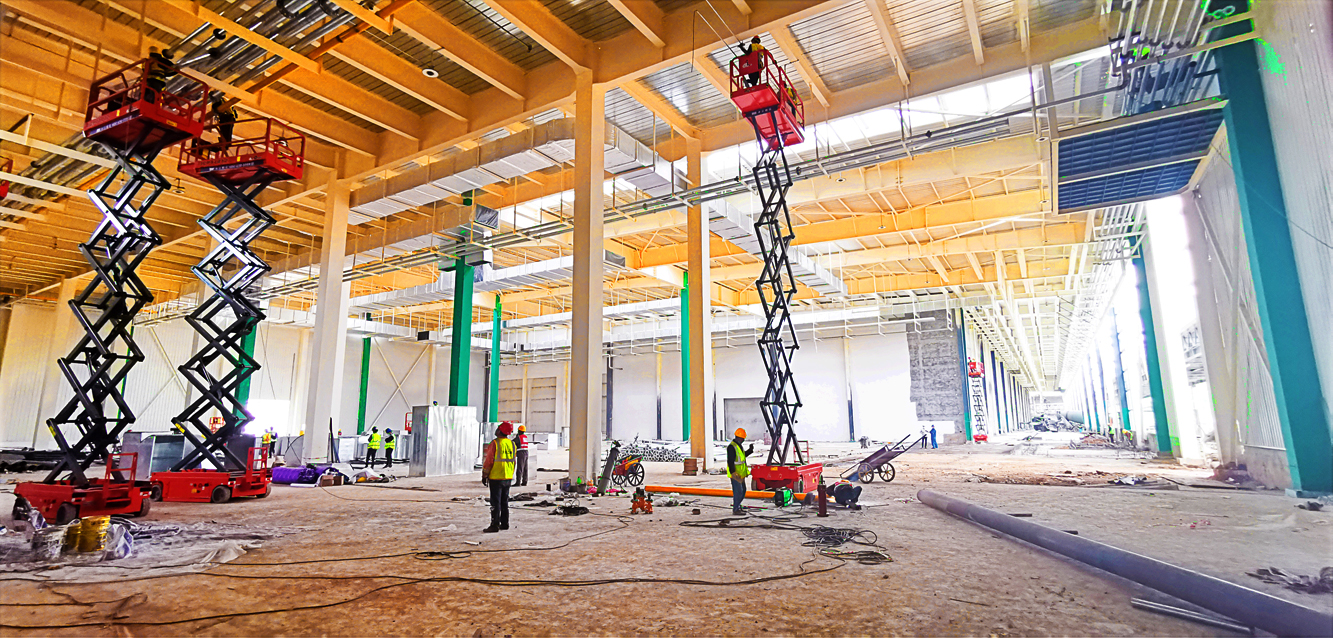 一汽丰田厂房消防安装、风管安装。