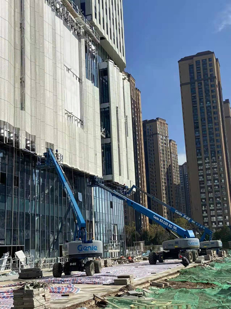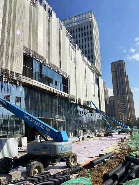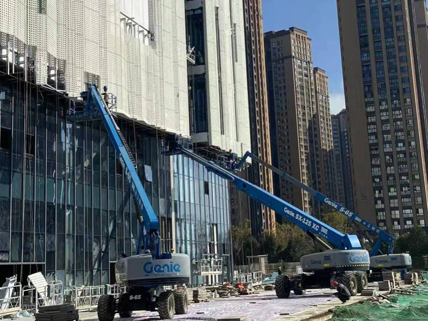 云旅旅游服务中心项目总用地面积为30672.40m2(约合46.01亩),总投资为6.5亿元,主体工程由商务交通服务中心、交通旅游配套服务中心、交通旅游服务中心、交通旅游办公中心及交通旅游服务办事处组成,共5栋建筑,各建筑相连。项目将打造成集特色旅游集散等多功能服务于一体,配套特色餐饮美食街区、休闲娱乐、星级办公、服务购物等相关设施的综合性旅游服务中心。 配图为永立租赁S-65 XC及S-125 XC,正在进行幕墙安装作业。