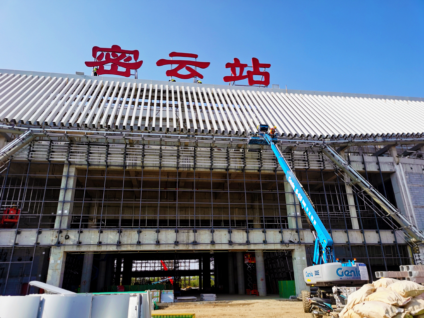 密云站位于中国北京市密云区,是中国铁路北京局集团有限公司管辖的铁路车站,也是京哈高速铁路的中间站。截至2021年1月,密云站站房面积5994.81平方米,站场规模2台6线。 配图为永立租赁设备在密云站进行幕墙施工。