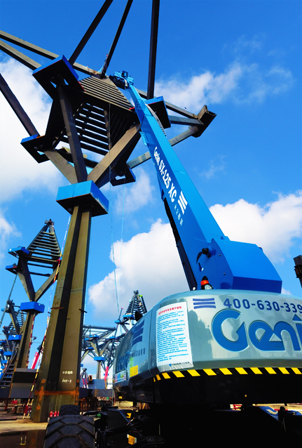 永立租赁有30多台38米直臂车,主要负责展馆中央大厅的钢构安装、通风及消防管道安装、以及展馆内部装饰等项目。