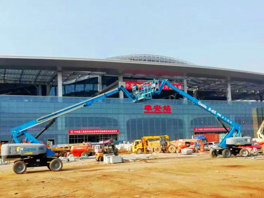 雄安站位于中国河北省保定市雄县境内,主要服务雄安新区,为中国铁路北京局集团有限公司北京车务段管辖的铁路客运站,是京雄城际铁路、京港高速铁路、津雄城际铁路、雄石城际铁路、雄忻高速铁路的交汇车站,也是雄安新区开工建设的第一个重大基础设施项目。 截至2020年12月,雄安站总建筑面积47.52万平方米,线路站场总规模为13台23线,其中铁路站场规模为11台19线。 配图为永立租赁S-65在雄安高铁站施工现场,准备进行幕墙施工。