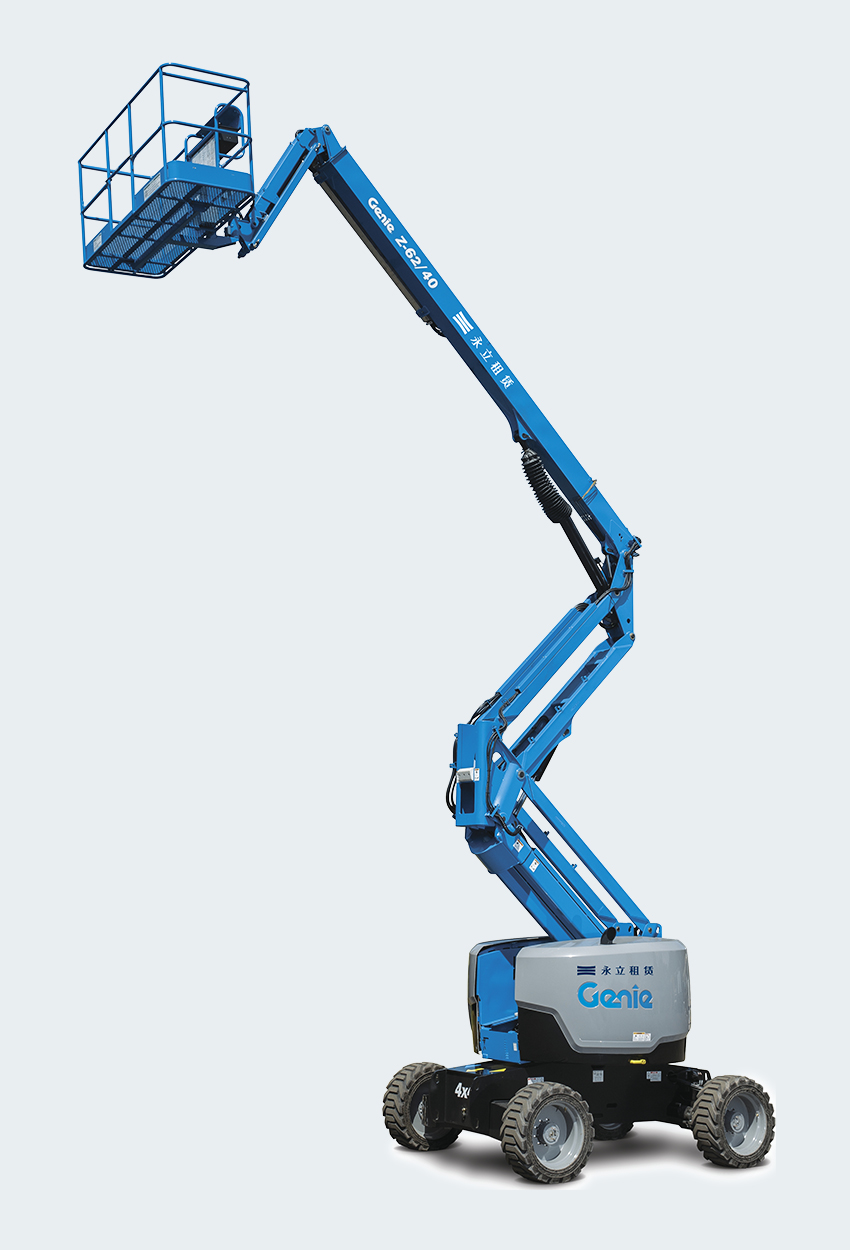 特点 带越野功能的Genie® Z®-62/40 曲臂型高空作业平台具有多项升降功能,提供出色的向上和向外跨越定位,且具有行业卓越的延展性,是室外建筑和工业领域的理想选择。