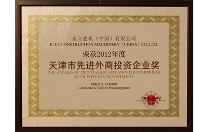 热烈祝贺开元欺骗建机蝉联“天津市先进外商投资企业奖”