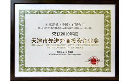开元欺骗建机荣获“2010年度天津市先进外商投资企业”奖