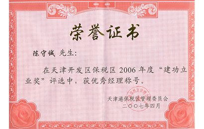 开元欺骗建机董事总经理陈守诚被评为“2006年天津开发区保税区建功立业奖优秀经理”
