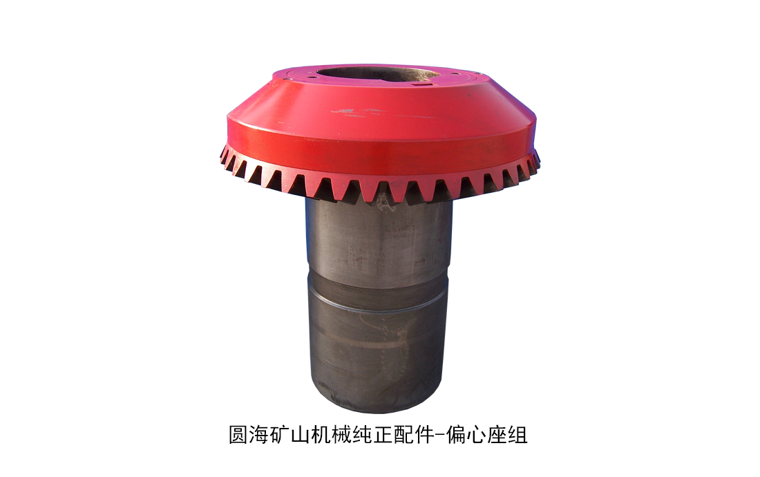 偏心座组:由偏心体和大齿轮经铸造后精加工而成。大齿轮和偏心体采用热套平键连接方式,紧密的公差配合保证大扭矩动力的传输。合理的偏心度及大齿轮偏心块的配合使圆锥机挤压破碎得以实现。