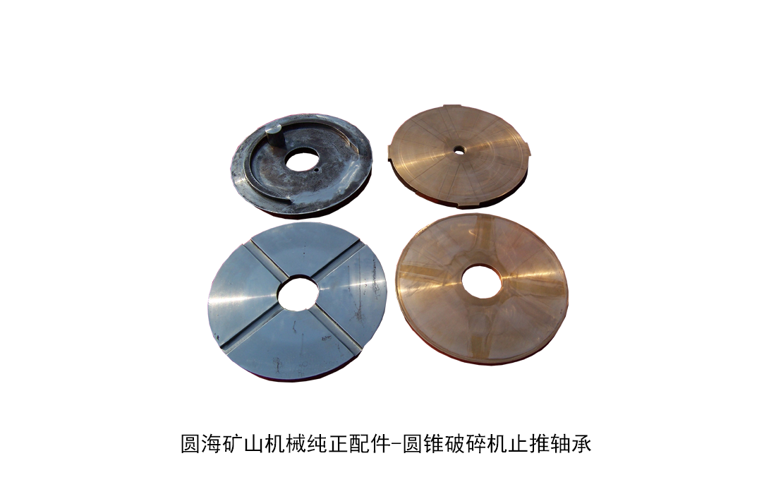 圆锥破碎机止推轴承:圆锥破碎机止推轴承的作用是支承偏心座,减小偏心座运转阻力。同时,其安装的精度直接影响圆锥齿轮的啮合间隙,保证合理的空偏心轴轴套(内铜)与主轴配合间隙,避免“飞车”现象发生。