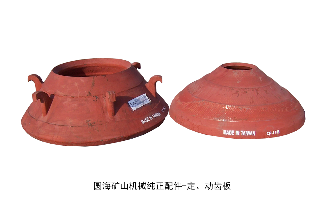 定、动齿板:定、动齿板材质为高锰钢,其配合表面经过精加工处理,保证齿板与锥面之间紧密粘和。根据客户对物料的需求,通过齿板的搭配,可以变化为多种破碎腔,在产量和质量上满足要求。